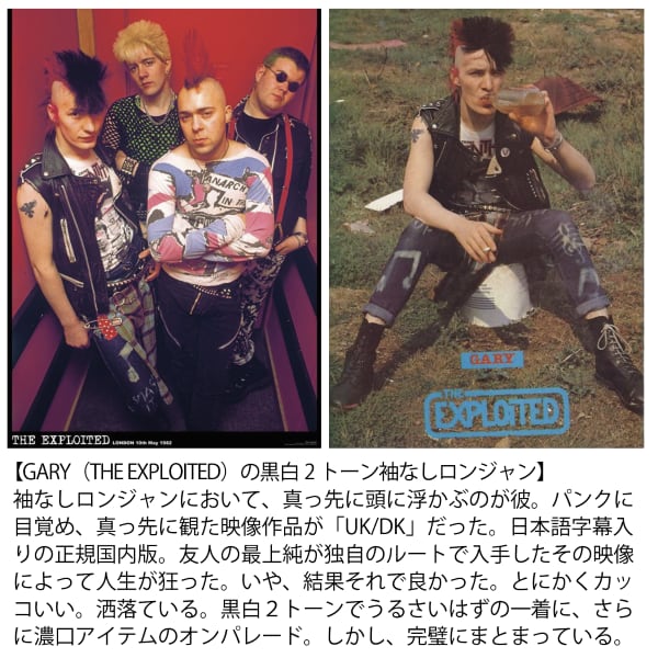 ちなみに個人的ベスト袖なし革ジャニストは「GARY(THE EXPLOITED)」。しかもU.K.黒白2トーン。マジで痺れる。今回黒白2トーンで袖なしFAITHを作ったのはGARYインスパイア系に他ならない。